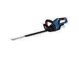Die Bosch DIY Akku-Heckenschere AHS 55-20 LI wird mit Akku und Ladegerät ausgeliefert. Die Ladezeit beträgt eine Stunde. Die Schnittlänge des Geräts ist 55 cm bei einem Messerabstand von 20 mm.